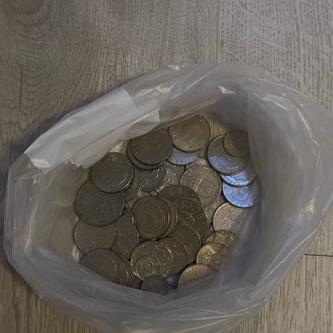 Pose med gamle mynter fra Sverige, ulike årstall