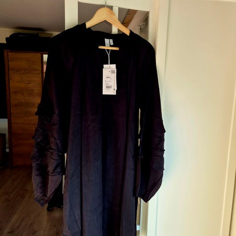 Vakker kjole fra Yas,svart bunnfarge med blomster i blått og innslag i gull.Meget pent og lite brukt.