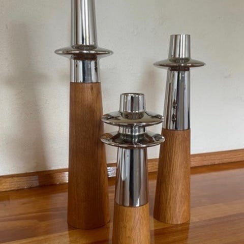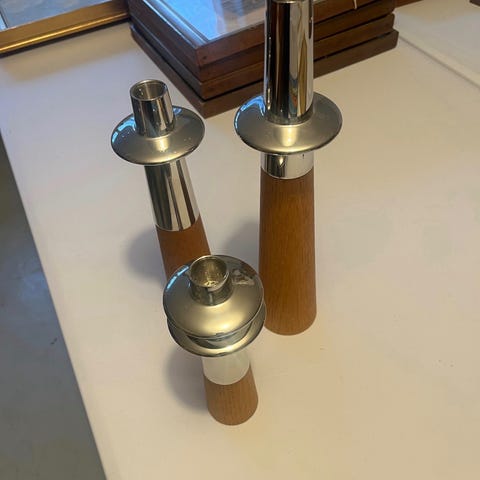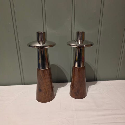 Lysestake (stor) rustfritt stål/eik