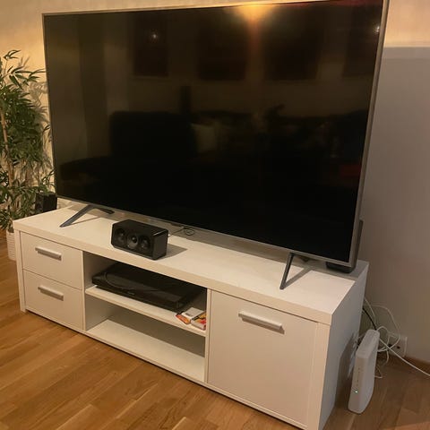 Kjøpt ny fra jysk. Kjøpt ny og brukt med en 75-tommers TV. Har kvitteringen.
