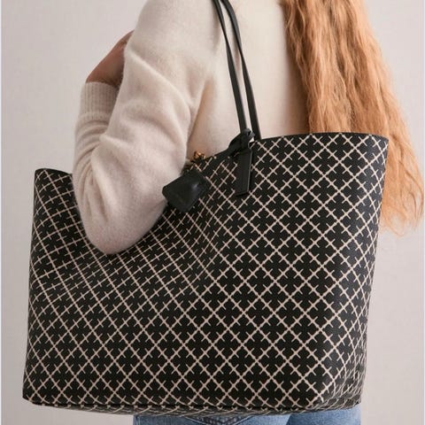 Malene Birger veske laget i kunstlær. Vesken har et svart og hvitt mønster og er designet for unisex bruk. Innvendig har vesken et romslig hovedrom med en lys brun farge.