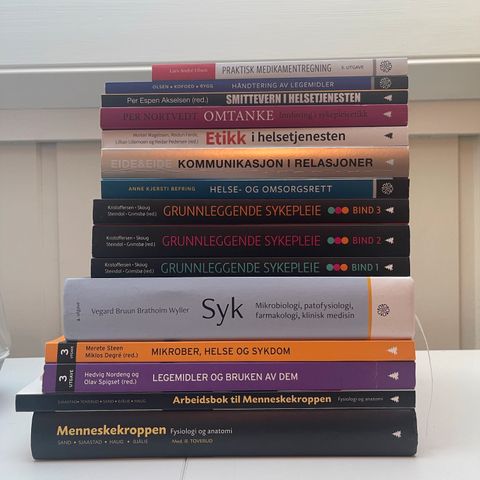 Selger diverse bøker brukt på sykeplriestudiet og helsesykepleierstudiet.