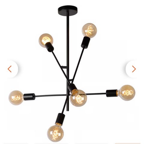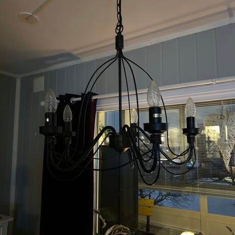 Selger en veldig fin taklampe i messing. 5 lyspærer inkludert, en mangler.