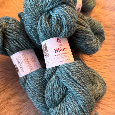 Blåne pelsullgarn er et 2-trådet, mykt og glansfullt kardegarn. Ca. 114m pr. 100g, Nm 2,3/2, 100% norsk ull.