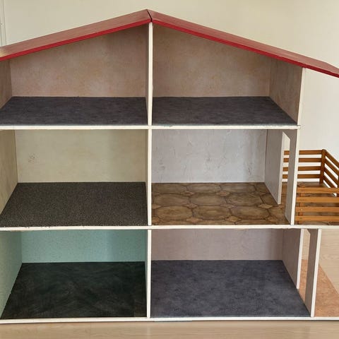 Stort dukkehus med litt møbler selges :) Det er bruksmerker, derfor selges det billig.
