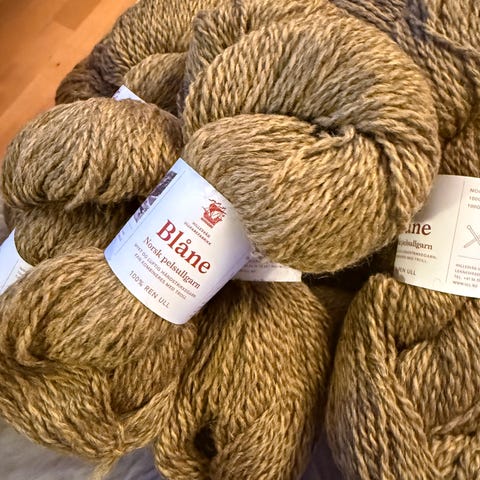 Blåne pelsullgarn er et 2-trådet, mykt og glansfullt kardegarn. Ca. 114m pr. 100g, Nm 2,3/2, 100% norsk ull.