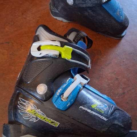 Selger barneski med tilhørende skistøvler. Brukt, men i god stand. Alt fungerer som det skal.