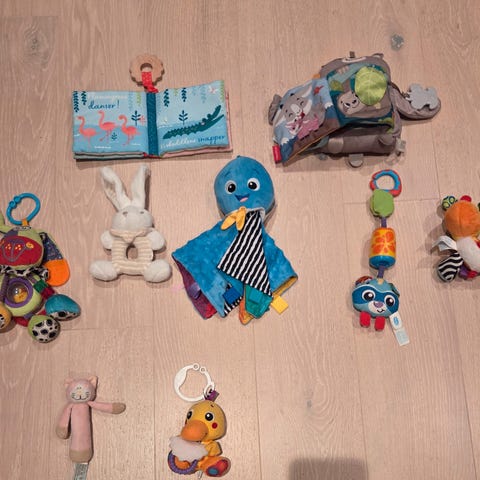 Selger en stor og myk ballbinge i grått stoff. Pent brukt og i god stand. Følger med mange baller i nøytrale farger og noen med litt farger.