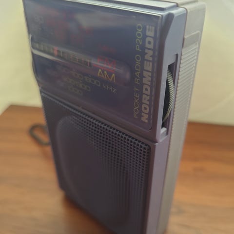 Tar 3 stk. AA batterier. Testet og fungerer utmerket. Ingen skader eller en gang bruksspor. Rett og fin antenne som er 46-47 cm lang, fullt trukket ut.