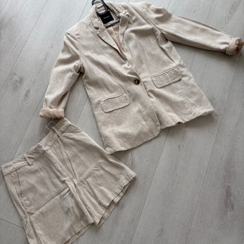 Selger et veldig pent sett fra NA-KD: Blazer med shorts. Pent brukt! Kult sammen eller hver for seg.