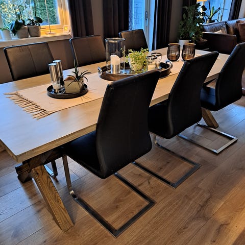 Bord kjøpt på A- møbler / Stoler fra bohus 6stk