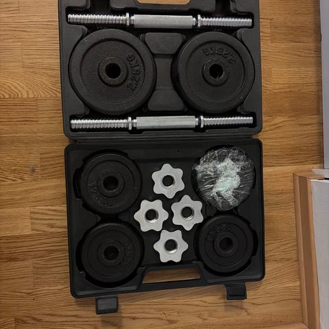 Gulvplater i gummi egnet for bruk i treningssentre eller treningsrom. Platene gir beskyttelse til gulvet og demper støt fra treningsutstyr. Materialet er slitesterkt og har en bakside med knotter for bedre støtdemping og ventilasjon. Platene kan legges sammen for å dekke større områder.