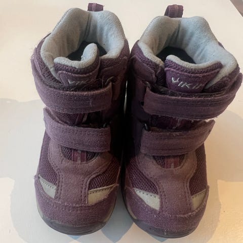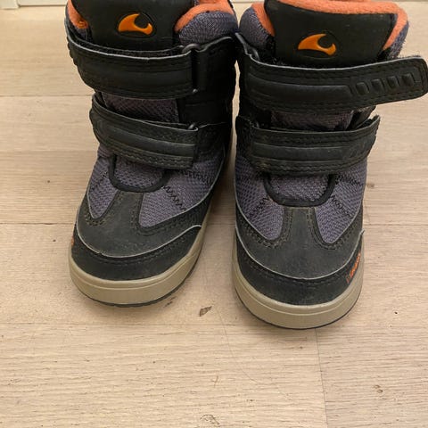 Viking barnesko i størrelse 22, designet for unisex bruk. Skoene er blå og har en slitesterk konstruksjon som passer for barn. De har borrelås for enkel justering og påkledning, samt foret innsiden for ekstra komfort og varme.