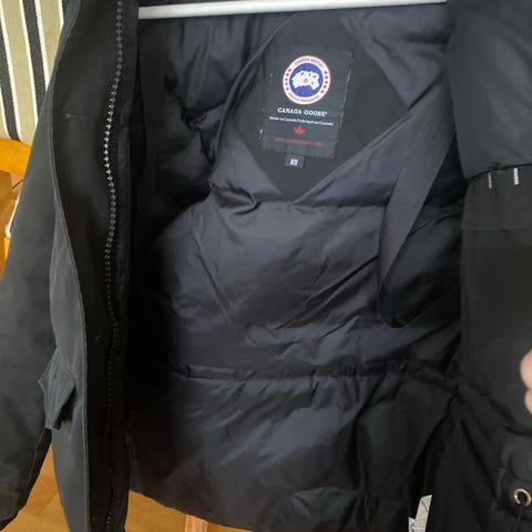 Selger en original Canada Goose Kensington Parka, dammodell i størrelse XS, klassisk svart farge.