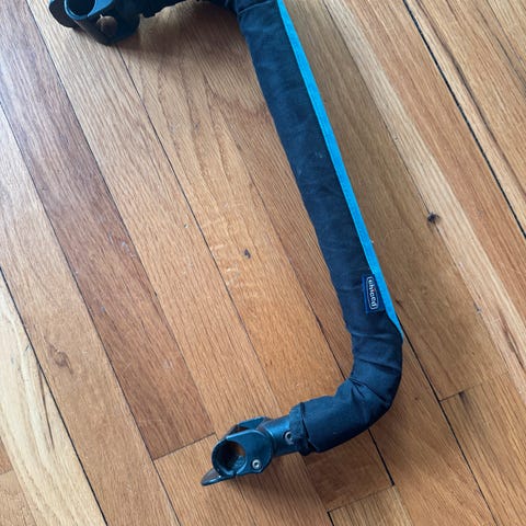 Bøyle / barnevognhåndtak i brun farge, laget av skinnmateriale. Passer som utskiftbar del til barnevogn og gir et komfortabelt grep.
