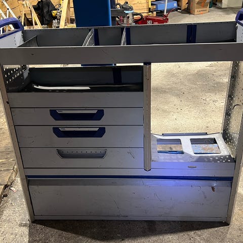 Selger komplette Sortimo Globelyst verktøymoduler/reolsystem. Profesjonelt og svært solid oppbevaringssystem, godt egnet for verksted, garasje, bod eller ny servicebil.