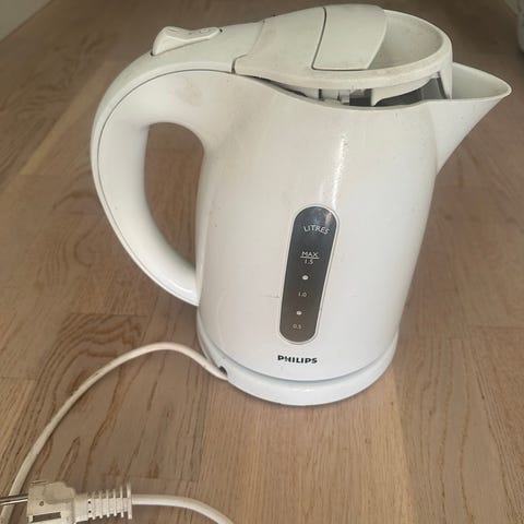 Philips vannkoker i svart farge med ledning. Egnet for oppvarming av vann til husholdningsbruk.