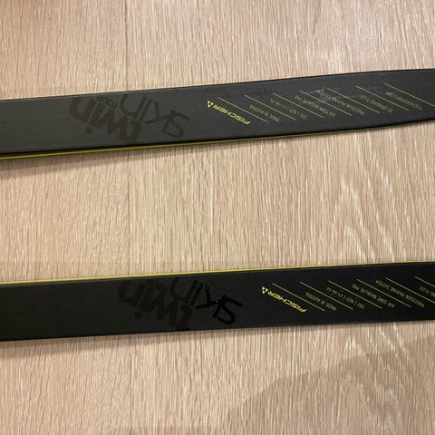Fischer Twin Skin One Carbon felleski. Skiene er laget med karbonmateriale og har Precision Turn System og Universal Plus såle. Produsert i Østerrike.