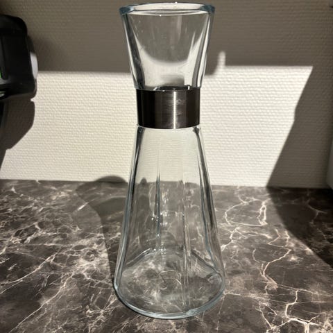 Rosendahl krydderkvern sett bestående av tre enheter i glass med svarte lokk. Salt- og pepperkvern, pluss matoljebeholder. Praktisk for bruk på kjøkkenet for enkel krydderpåføring.