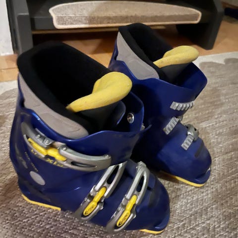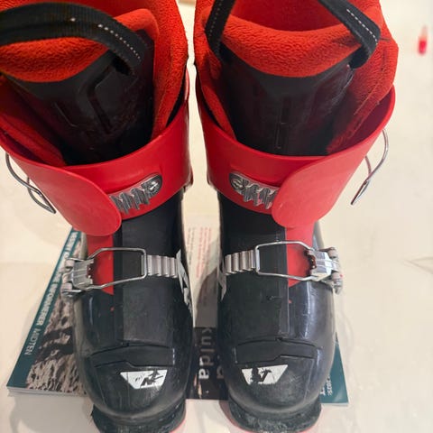 Nordica skistøvler i størrelse 23-23,5. Fargene er svart med røde detaljer. Støvlene har fire spenner for justering og en solid såle for godt grep. Egnet for alpinski.