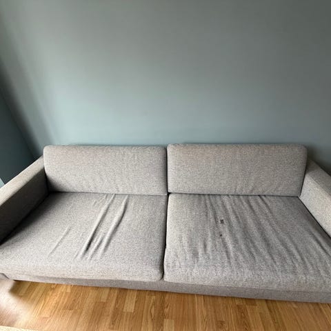 Veldig god å sitte i. Putene er solide, holder godt på formen og er fyllt med dun. Kjøpt i 2017. Noe skitten på baksiden\undersiden på et par av putene.