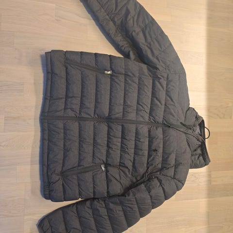 Veldig varm, høykvalitets vinterdunjakke for menn med avtakbar hette, vanntett. Kjøpt i fjor og brukt kun én gang, den er for liten for meg. Den har flere lommer, inkludert en på armen.