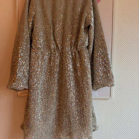 Name it Paljetter Kjole i sølv for jente, størrelse 164. 14Y. Brukt en julaften.