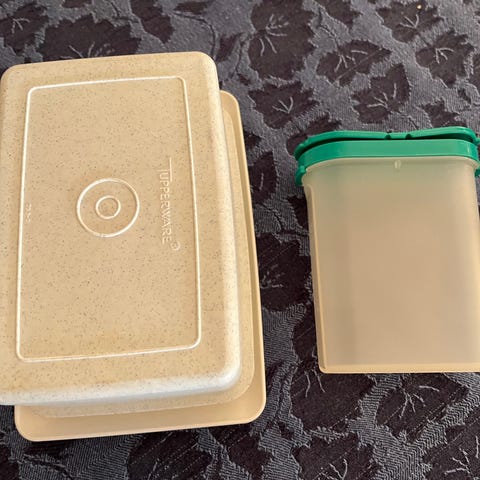 Brukt masse, mem masse bruk igjen. Det lokket med hull er kun håndvasket etter råd fra tupperware