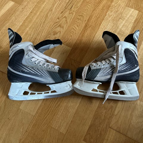 CCM Ishockeyskøyter for barn i størrelse 38. Skøytene er svarte med hvite lisser og har innvendig fôr. Egnet for ishockeybruk.