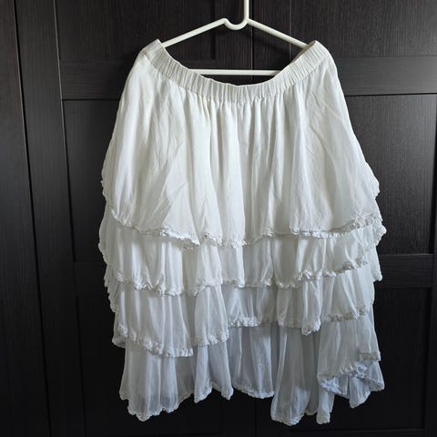 Flott voluminøst skjørt fra Ewa i Walla. 100% bomull . Flere lag med stoff som er stivet slik at det ‘strutter’. Står at det er str. 1, men kan fint brukes av både S og M.