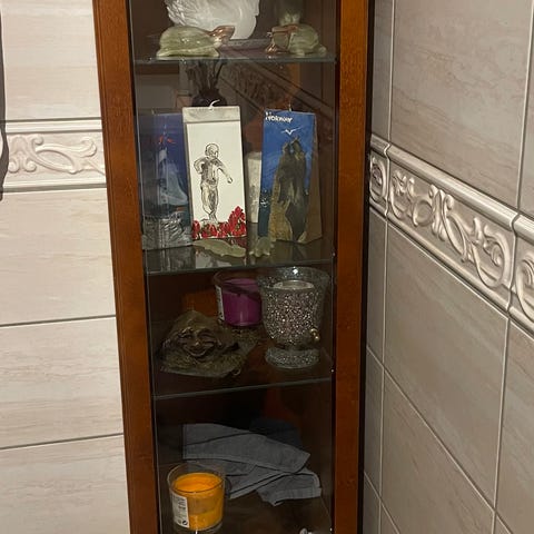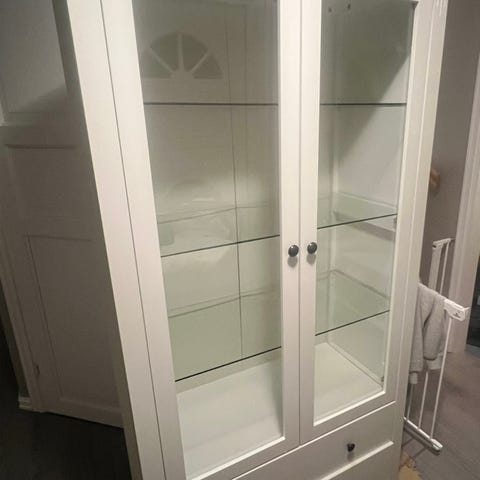 Stått rolig i 3 år. Ingen slitemerker. Glass i dører og hyller. Blågrå farge.
