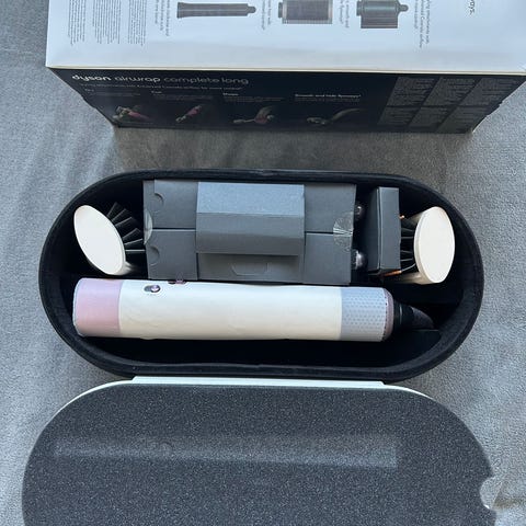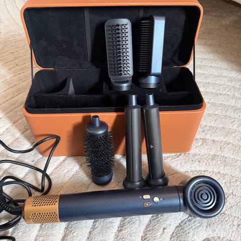 Komplett sett med flere tilbehør for styling og hårpleie. Inkluderer ulike børster, diffuser og stylingverktøy. Leveres i praktisk etui for trygg oppbevaring og enkel transport. Original eske kan sendes med.