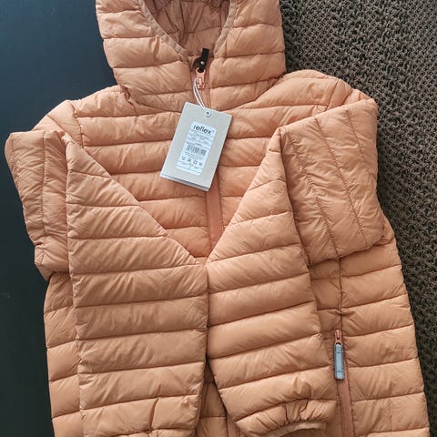 Scotch & Soda dunjakke for barn i størrelse 152. Jakken er grønn og unisex, laget med dun som materiale. Den har hette og glidelås, egnet for kalde værforhold.