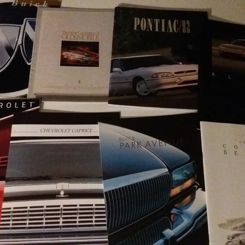 24 stk GM - Chevrolet bilbrosjyrer selges sammen. FRI FRAKT!