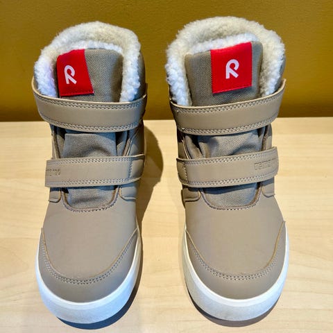 Reima barn vintersko størrelse 34. Skoene er designet for barn og har en funksjonell snøring for justering. Passer til bruk i vinterforhold med solid yttersåle for godt grep. Støvlene er brukt veldig lite da de ble fort for små . Opplever de litt små i størrelsen. Veldig varme