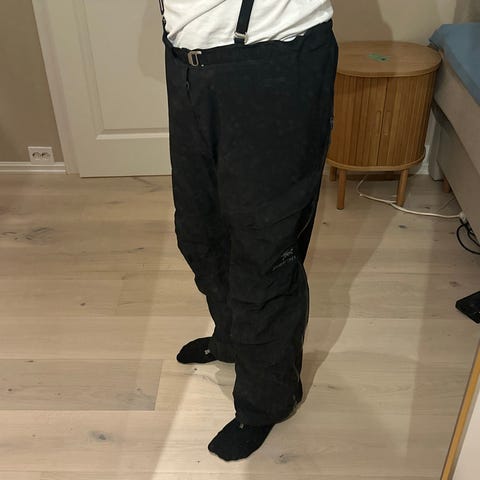 Arc'teryx regntøy i Gore-Tex materiale, størrelse XL for herre, i svart farge. Plagget er designet for å gi beskyttelse mot regn og fuktighet.