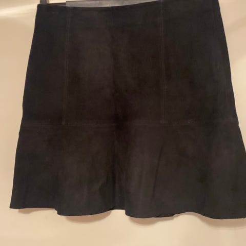 Selger dette flotte skjørtet fra H&M i svart cord. Størrelsen er 42, og den er ca 43/44 cm i midjen og ca 65 cm langt. Kjolen har glidelås på siden og en lett utsvingt fasong nederst. Så fint på, men dessverre blitt for lite. Skjørtet er laget av 98% bomull og 2% spandex. Underskjørtet er 100% polyester.