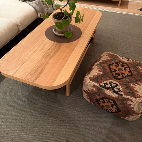 Pent brukt salongbord fra Ikea med plass til oppbevaring under bordet.
