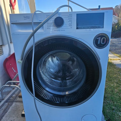 Har stått ubrukt på vaskerom i mange år. Testet den nå og den fungerer. Må bæres opp fra kjeller av mottaker.