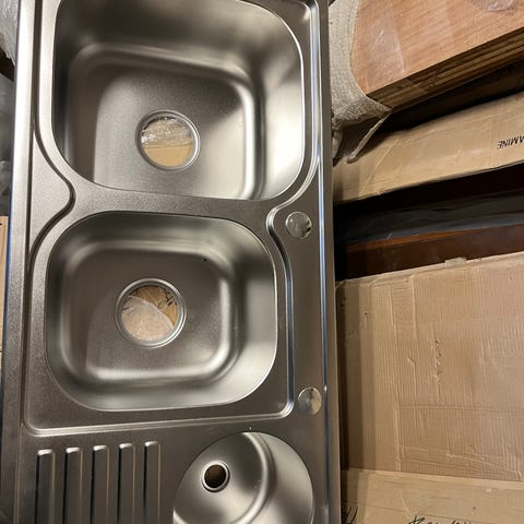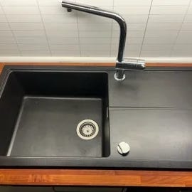 Franke dobbel kum i rustfritt stål med Grohe armatur