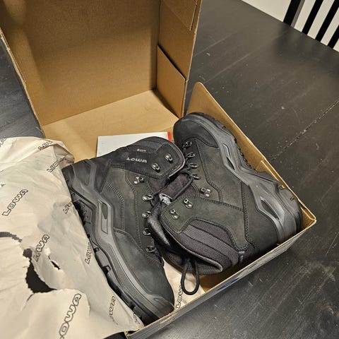 Ikke synlig brukt. I skoen står det str. 43, men jeg har 44 og disse passer perfekt for meg med ullsokker. Perfekt for jakt eller fiske