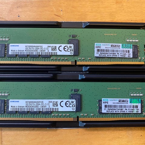 Samsung RAM-minnemoduler av typen DDR4.