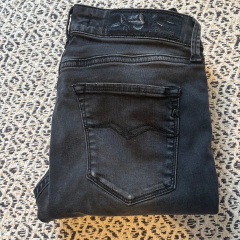Ganske tettsittende tøff bukse trenger ny eier. Står str 27/30 på buksa. Merket på baksiden er nesten slit bort, men buksa er like fin🙂