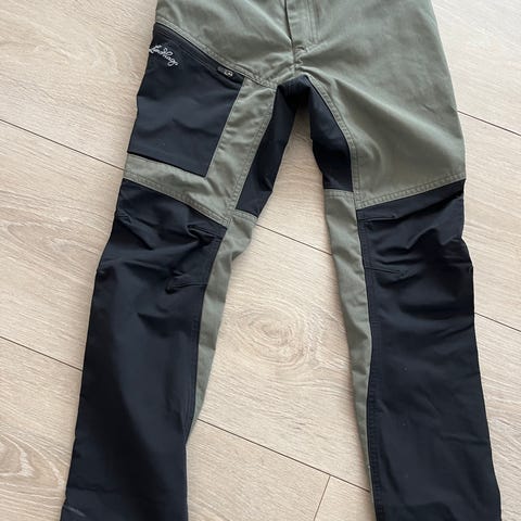Buksen er brukt og har noe slitasje bak, knær og i nederste kant.
