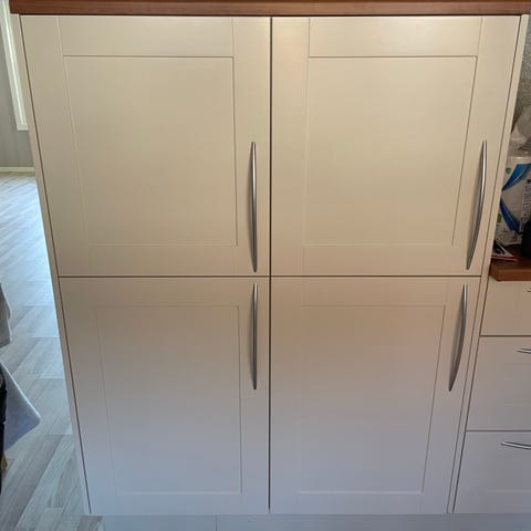 Består av tre deler: overskap, åpen hylledel og underskap. Passer perfekt på hytte, i landlig interiør eller som et dekorativt oppbevaringsmøbel.