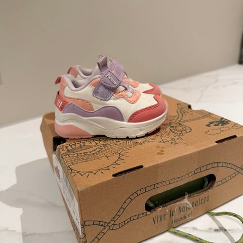 ECCO barnesko for jente i størrelse 20. Skoene har borrelåslukking og en myk, fleksibel såle. Fargen er en mørk rosa/lilla nyanse. Egnet for små barn og gir støtte og komfort ved gange.