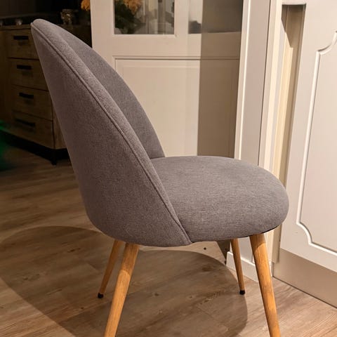 Godt brukte spisestoler fra Jysk, merket Jonstrup. Kjøpt brukt på Finn, og en del synlige merker fra gamle eier (som hadde katt). Derfor valgt å ha trekk over stolene, som har fungert veldig bra for oss 🥰 200kr for alle 4, fortsatt velfungerende og gode å sitte i.