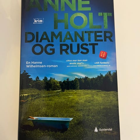 Anne Holt Diamanter og rust er en bok. Den har et omslag med en naturillustrasjon og tekst på norsk.