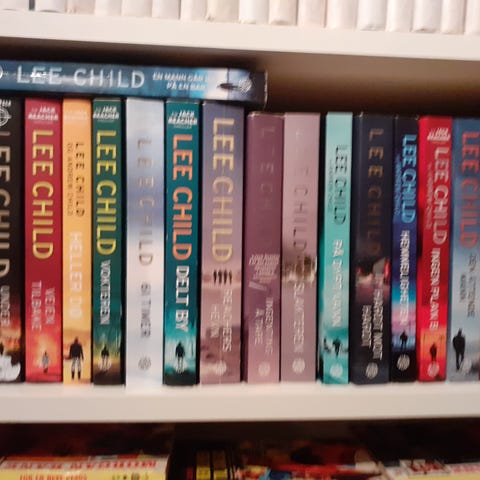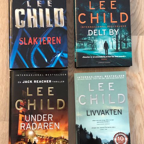 Lee Child bokserie innen kriminalroman-sjangeren. Serien består av flere bøker med varierende omslagsdesign og farger. Egnet for lesere som er interessert i spennings- og kriminalromaner.Selges samlet