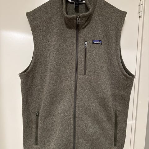 Patagonia fleecevest og genser i blå farge, størrelse M for herre. Orginalpris 3600kr. Kjøpt for 1 år siden. Veldig lite brukt, fremstår som ny!